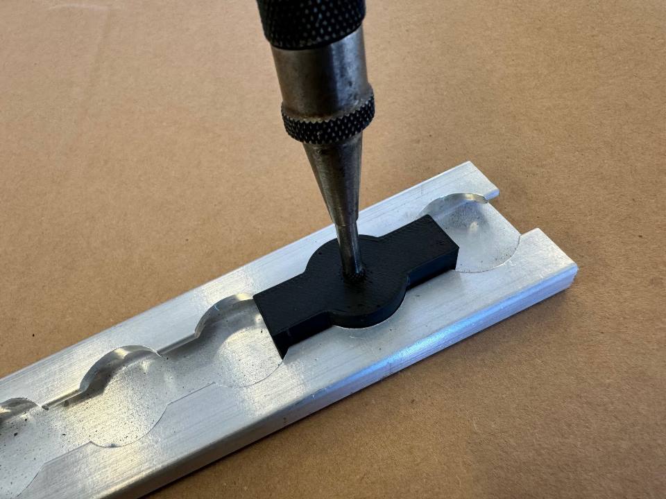 Useful tool for when you need to drill your own fixing holes in Airline Rail. Our 3d printed part drops into the slots in any airline rail, L-Track, cargo track.