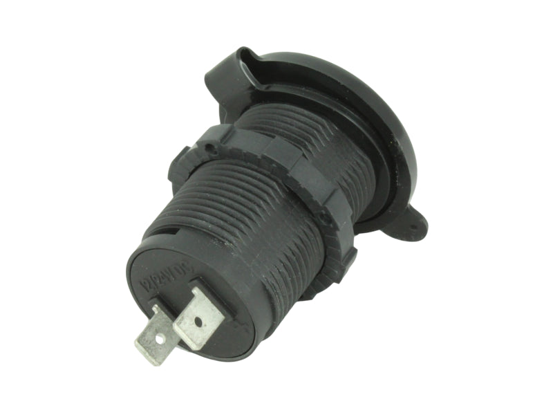 The Dual USB Socket accepts a 9v-32v input feed, making it suitable for both 12v and 24v applications. The Dual Socket is easily wired using a pair of standard 6.3mm male spade terminals on the rear of the socket. All you’ll require is a live supply feed and an earth/ground. We recommend a fused (2amp) power supply.
