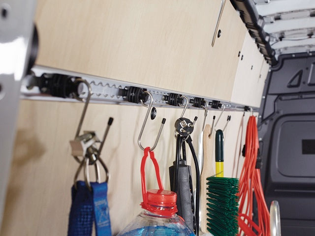 Useful hook that clicks into any cargo-rail product. Uses the standard one handed quick-release feature found on the single stud lashing rings for easy fitment and removal.