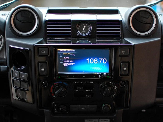 A neat upgrade over the original dashboard fascia is that the top vents in this replacement Defender Puma Double DIN fascia swivel to allow you to direct airflow exactly where you need it.