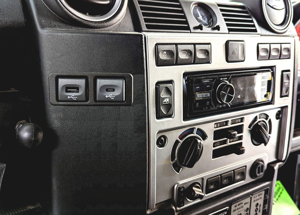 The 2-Gang switch mount can be mounted in a variety of positions within the Defender.  Any flat surface can be utilised on the Defender dashboard, another good location is the centre cubby box.