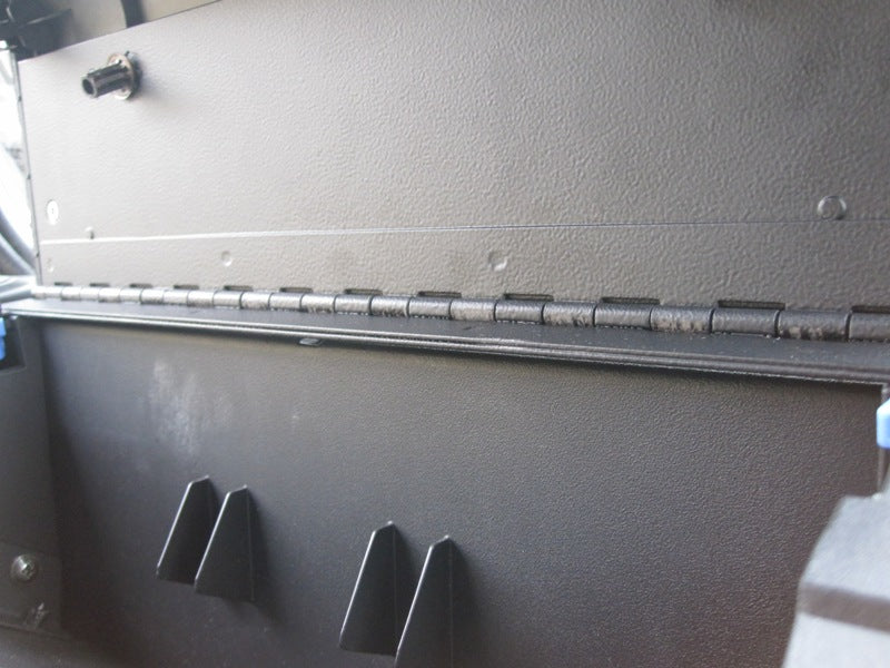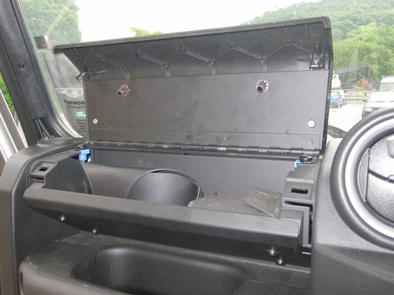 The Puma Glovebox kit comprises a steel hinge panel that attaches to the original dashboard lid and a lower steel panel that attaches to the area above the grab-handle to create a concealed storage tray.