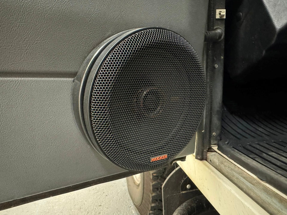The 123mm cut-out diameter of these speakers means they're a perfect replacement for the OE spec 6in Clarion speakers used in the North American Specification (NAS) Defender and 50th Anniversary V8 Defenders. They can be installed into the Defender front door trims and rear speaker housings with no modifications required.