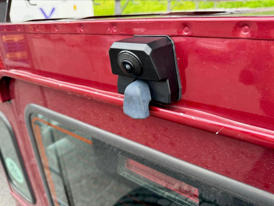 The high-level camera location provides both a stealthy factory appearance and a centralised high-level location for the camera image to provide a more useful field of rearward vision than other aftermarket cameras.