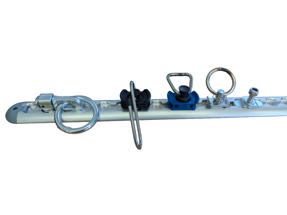 The flexibility of the Cargo Rail system allows you to slide tie-downs and accessory fixings along the length of the Cargo Rail thereby ensuring your fixing or lashing points are always exactly where you need them.