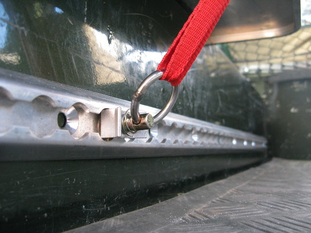 The flexibility of the Cargo Rail system allows you to slide tie-downs and accessory fixings along the length of the Cargo Rail thereby ensuring your fixing or lashing points are always exactly where you need them. The Quick-Release nature of many of the accessories means they can be fitted in seconds and removed completely when not in use. The slimline track will fit our full range of cargo track accessories as demonstrated in the picture below.