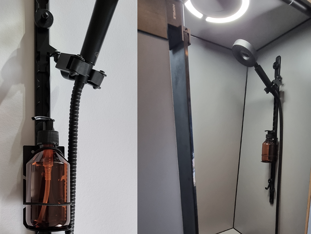 The shower head can be rotated and swivelled and is fastened in place using SeaLand-pro’s protected 2-point fastening technology with quick screw connection. This avoids noises that can occur with semi-rigid spring systems.