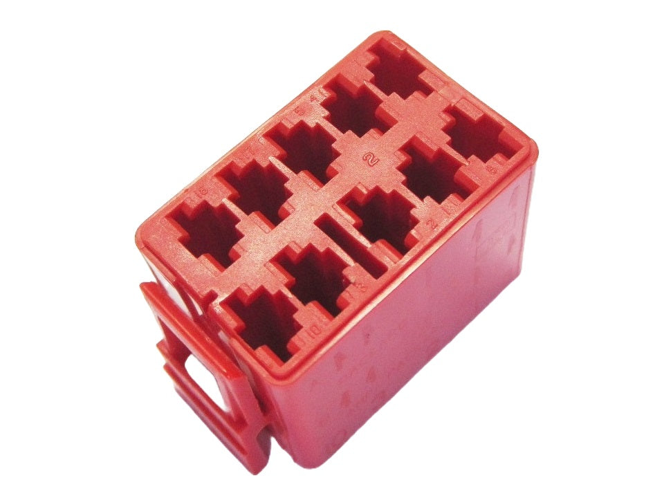 Connector plugs into back of Carling switch body. Locking tab offers a secure connection. Requires 6.3mm female latching spade terminals. Note that the total depth required for a switch and connector is 50mm. Check available clearance.
