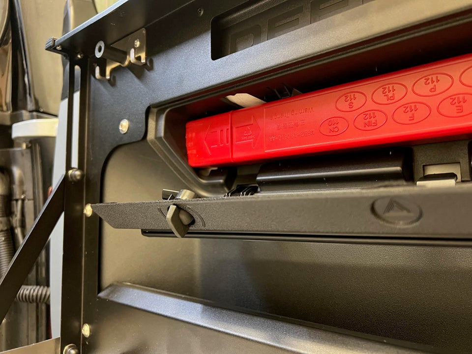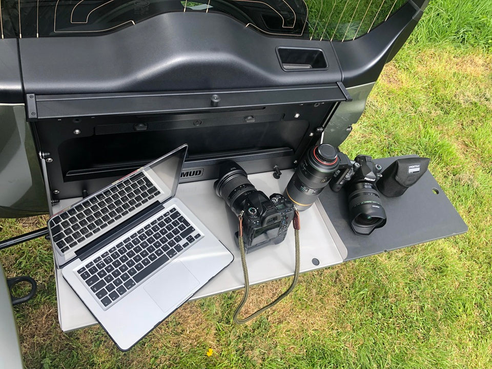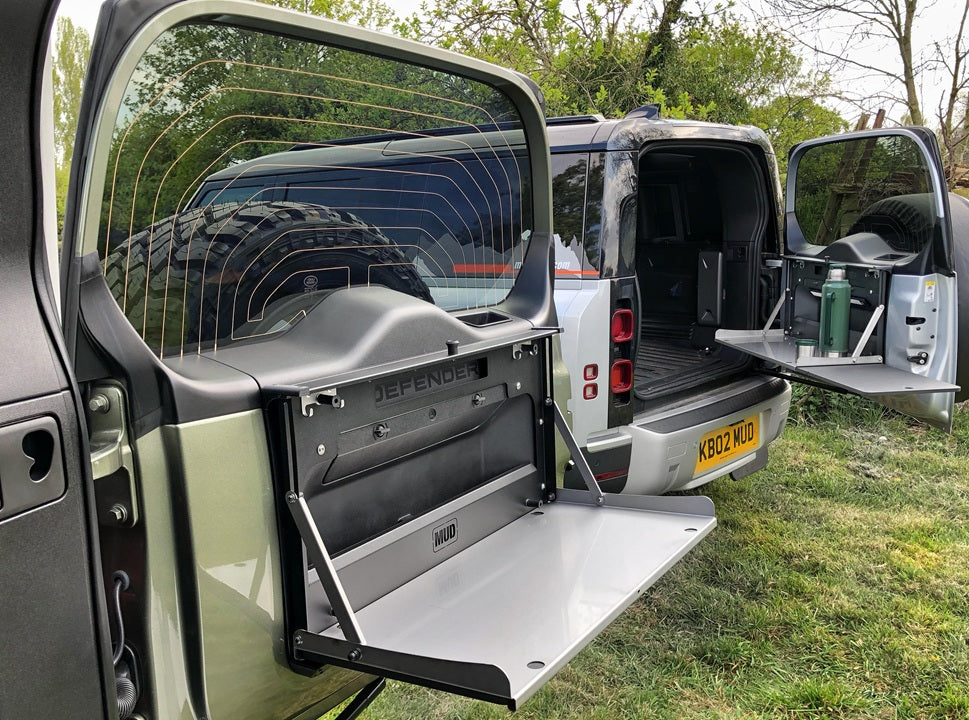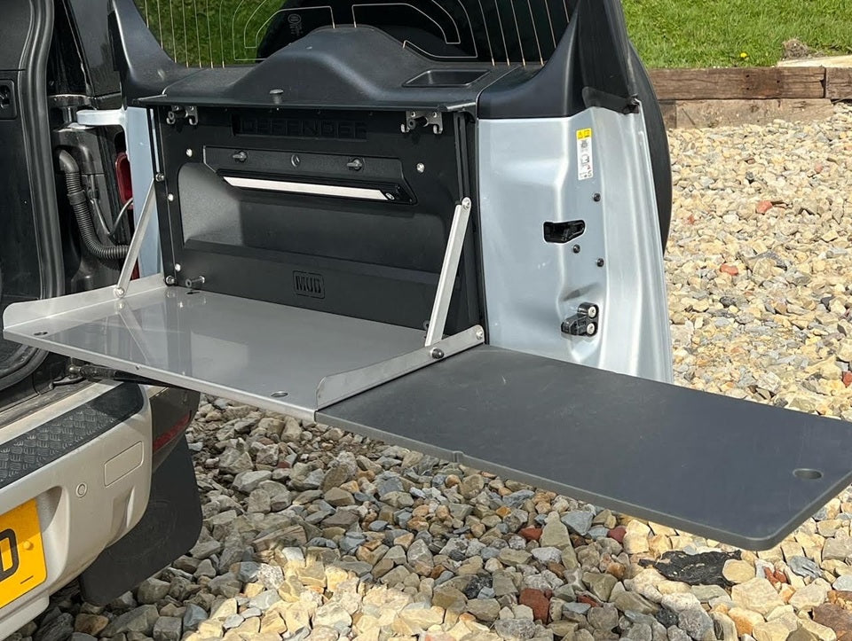 The MUD Defender Rear Door Table sets itself apart from repurposed ‘Universal Fit/Jeep Wrangler’ tables with Defender brackets. The design brief was to create a product that looked like it belonged on the new Defender and didn’t look like some generic aftermarket bolt-on table.