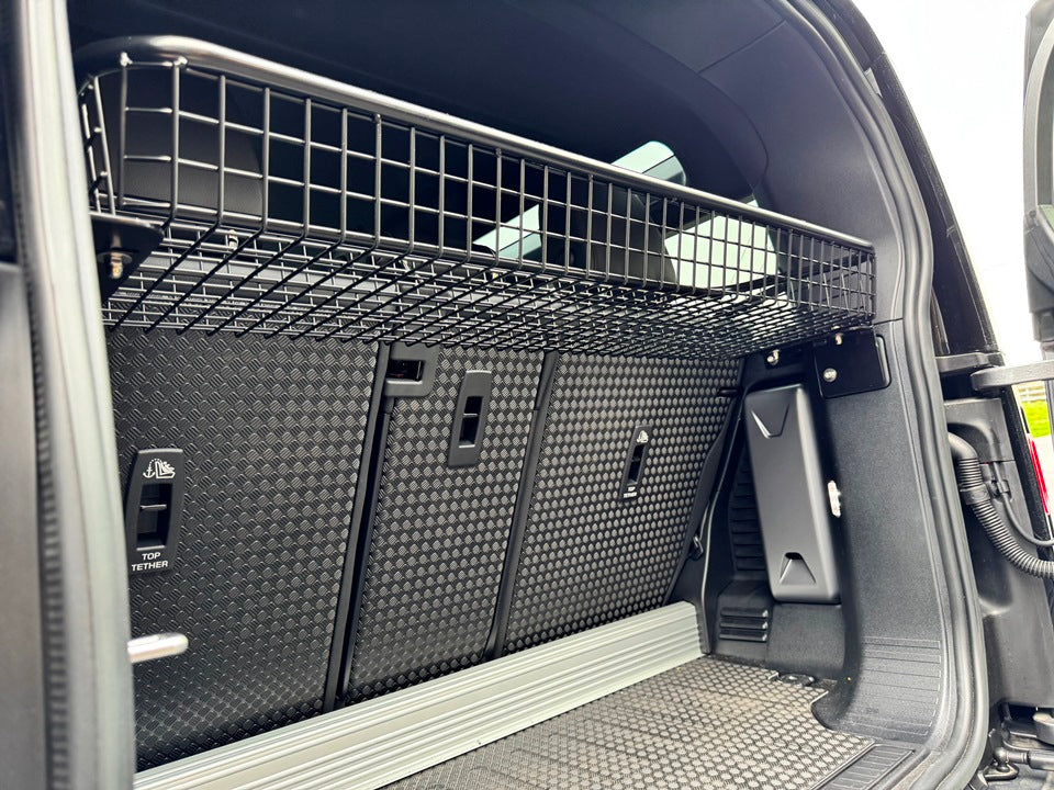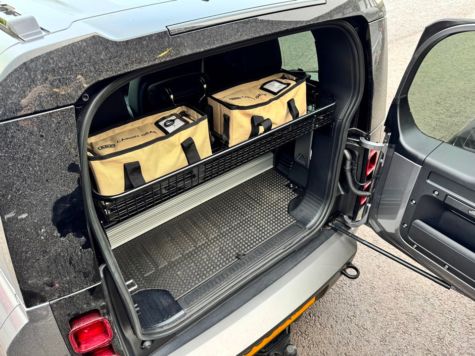 The Defender Boot Basket replaces the useless fabric cover that Land Rover supplies with a rigid shelf/basket that creates a more flexible and practical two-tier storage system in the boot/trunk of your Defender 90.