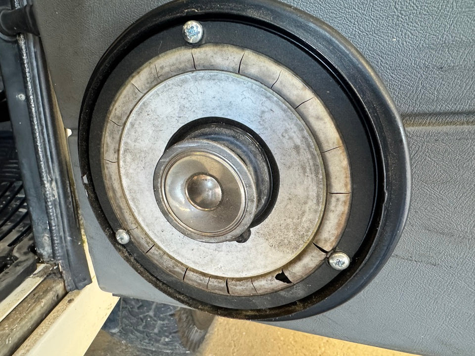 The NAS/50th models used a unique and now obsolete door trim that had a cut-out in it for the back of the speakers to sit into and had provision for the fixings. The 3x speaker fasteners picked up on 3x spire/speed clips attached to the Defender door trim. In order to retro-fit the Genuine Land Rover NAS door speaker plinths to a regular Defender door trim you will have to cut a hole out of your door trims to create room for the back of the speaker.