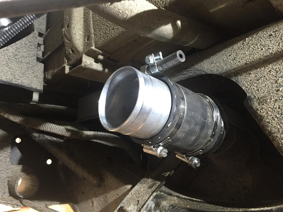 Insert the aluminium adaptor into the filler hose and secure in place with the supplied stainless-steel Jubilee Clips.