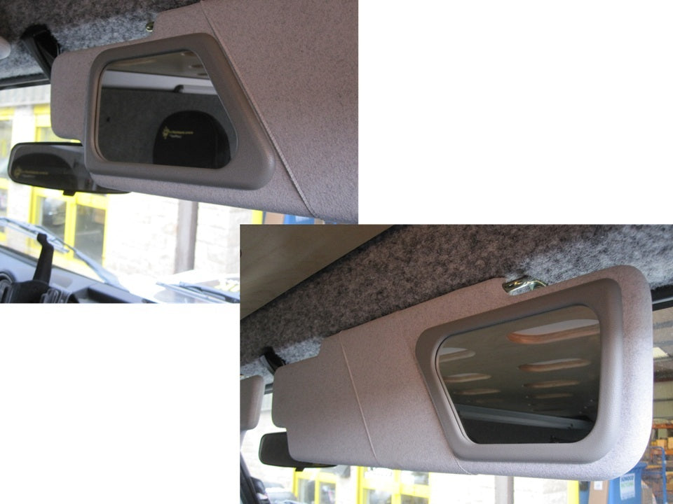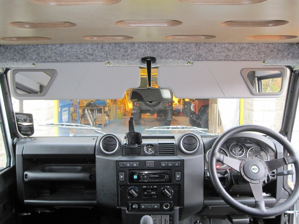 The MUD Defender Sun Visor Mirror is a simple stick on mirror but one that’s been CAD designed and profiled to follow the shape of the Defender sun visor.