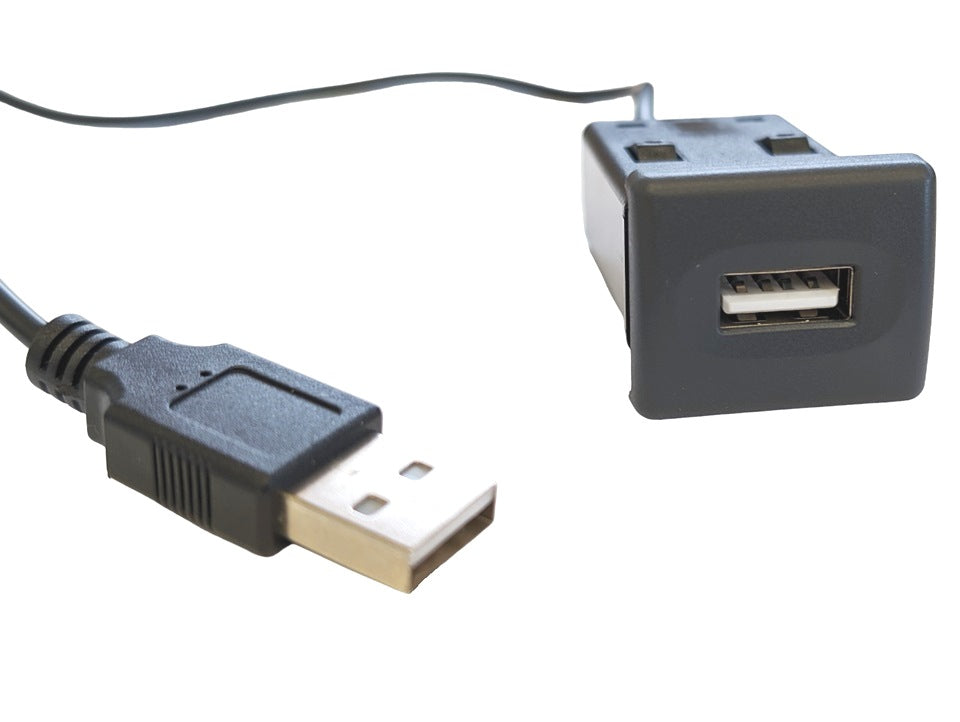 The MUD USB Extension socket is equipped with a Male USB-A connector to plug directly into the Female USB A socket/lead on the back of your head unit.